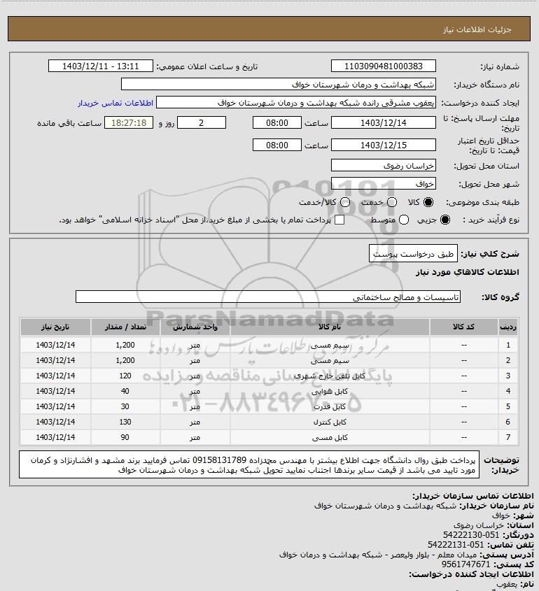 نام دستگاه خریدار:شبکه بهداشت و درمان شهرستان خواف