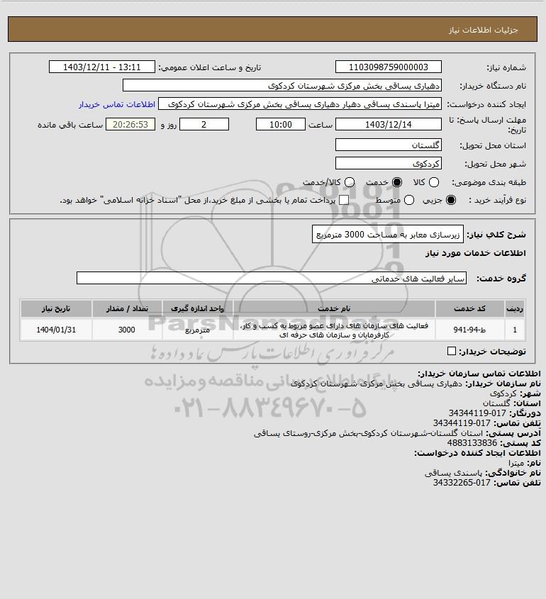 نام دستگاه خریدار:دهیاری یساقی بخش مرکزی شهرستان کردکوی