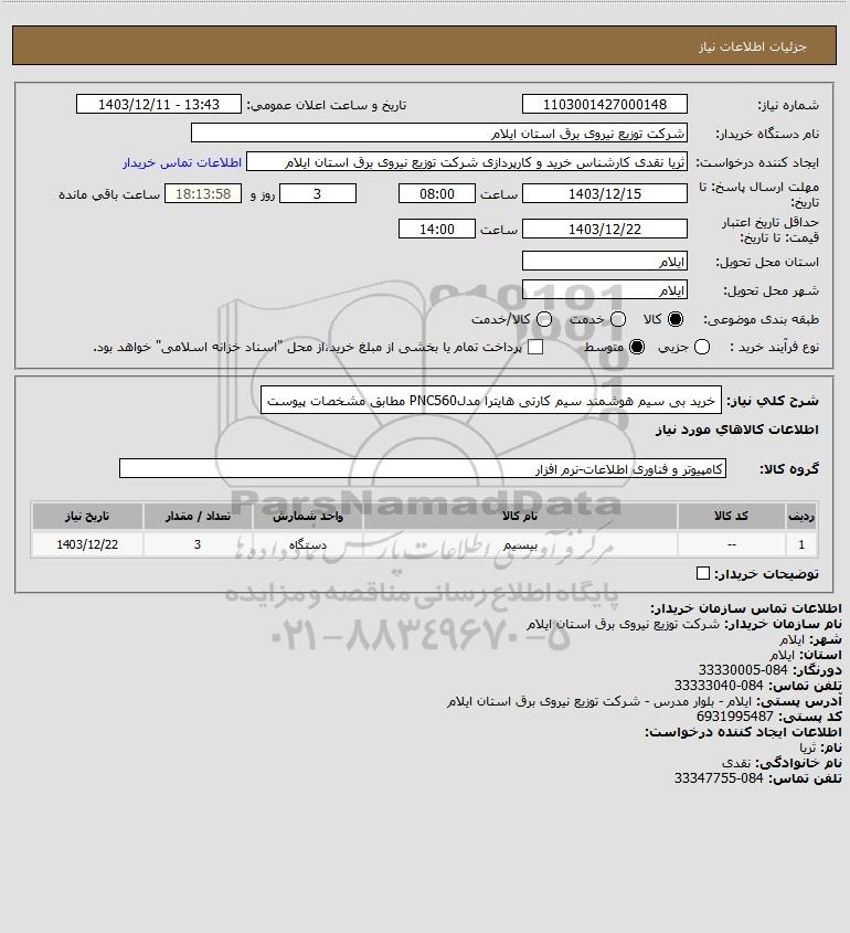 شرح کلی نیاز: خرید بی سیم هوشمند سیم کارتی هایترا مدلPNC560 مطابق مشخصات پیوست