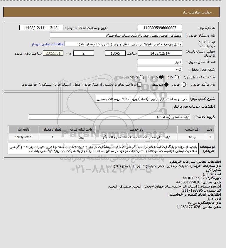 شرح کلی نیاز: خرید و ساخت تابلو بیلبورد (المان) ورودی های روستای رامجین