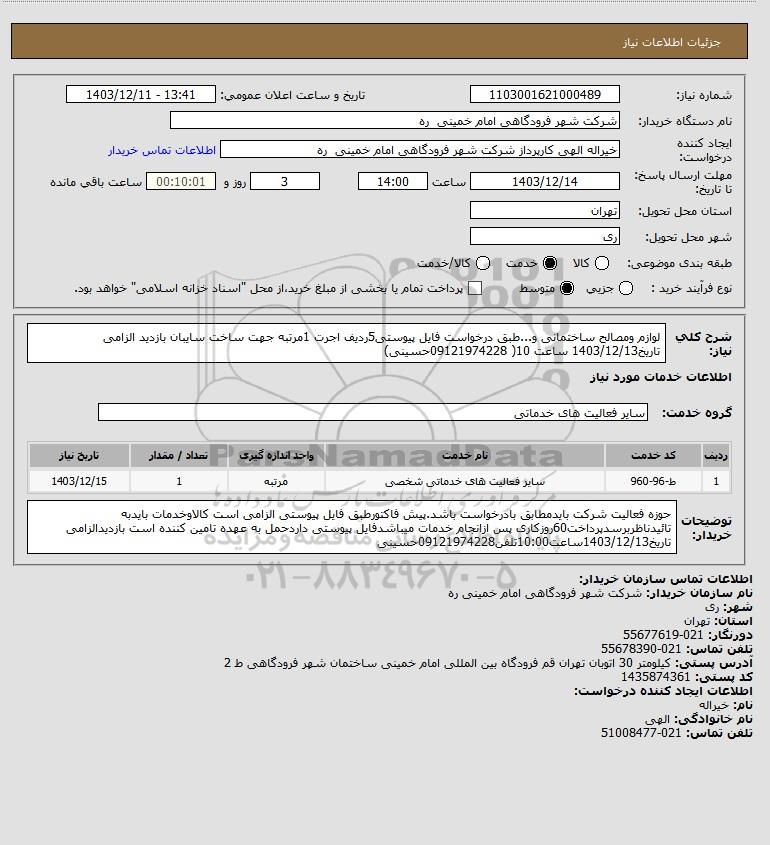 نام دستگاه خریدار:شرکت شهر فرودگاهی امام خمینی ره