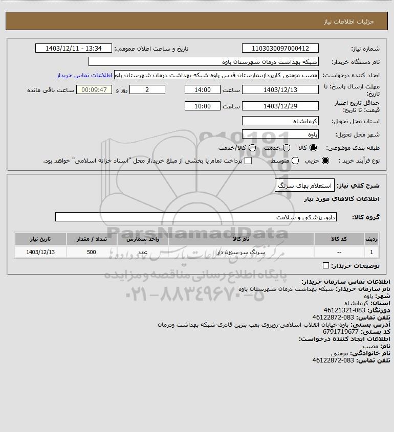 استعلام استعلام بهای سرنگ, استعلام استعلام بهای سرنگ