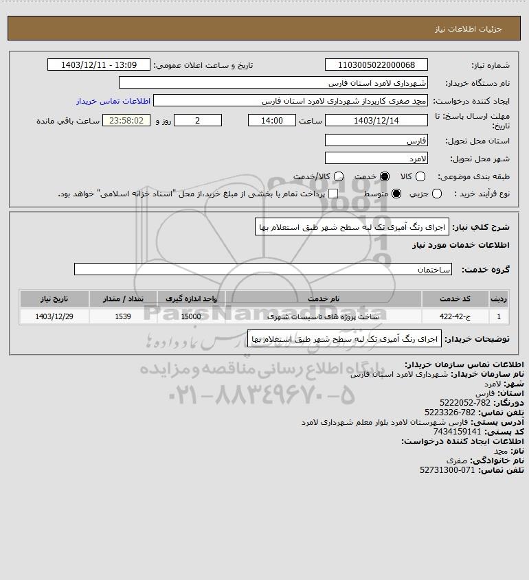 توضیحات خریدار:اجرای رنگ آمیزی تک لبه سطح شهر طبق استعلام بها