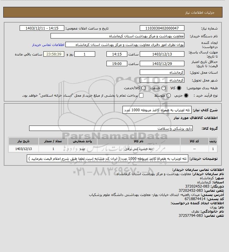 نام دستگاه خریدار:معاونت بهداشت و مرکز بهداشت استان کرمانشاه