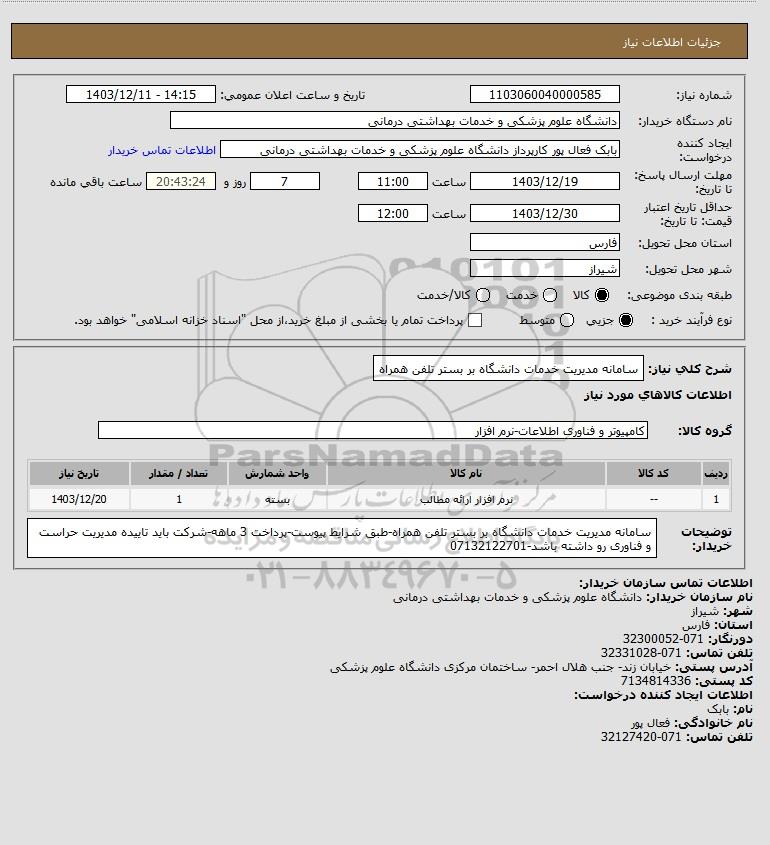 توضیحات خریدار:سامانه مدیریت خدمات دانشگاه بر بستر تلفن همراه-طبق شرایط پیوست-پرداخت 3 ماهه-شرکت باید تاییده مدیریت حراست و فناوری رو داشته باشد-07132122701