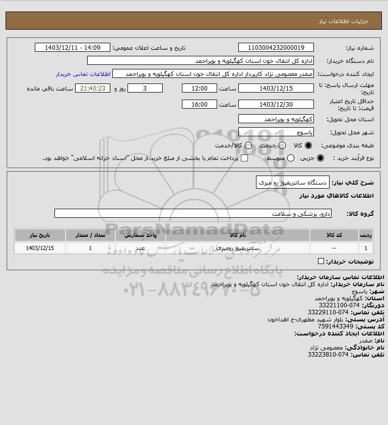 نام دستگاه خریدار:اداره کل انتقال خون استان کهگیلویه و بویراحمد