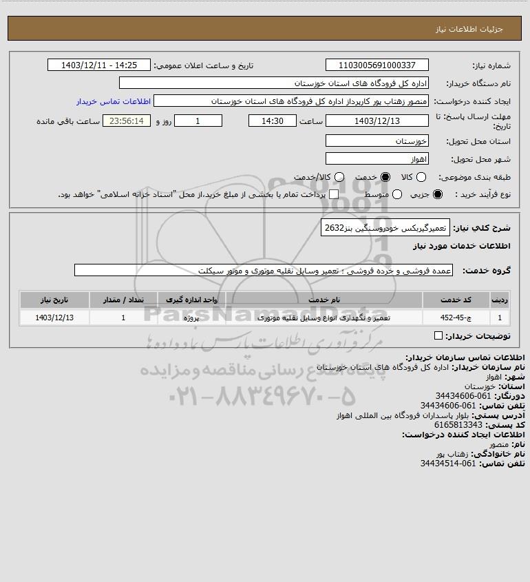 شرح کلی نیاز: تعمیرگیربکس خودروسنگین بنز2632