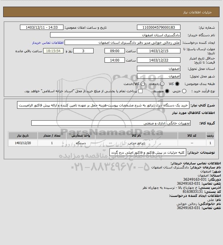 نام دستگاه خریدار:دادگستری استان اصفهان