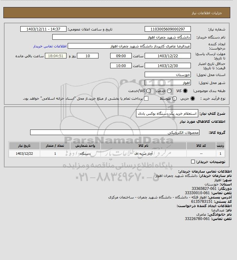 استعلام استعلام خرید یک دستگاه بوکس بادی, استعلام استعلام خرید یک دستگاه بوکس بادی