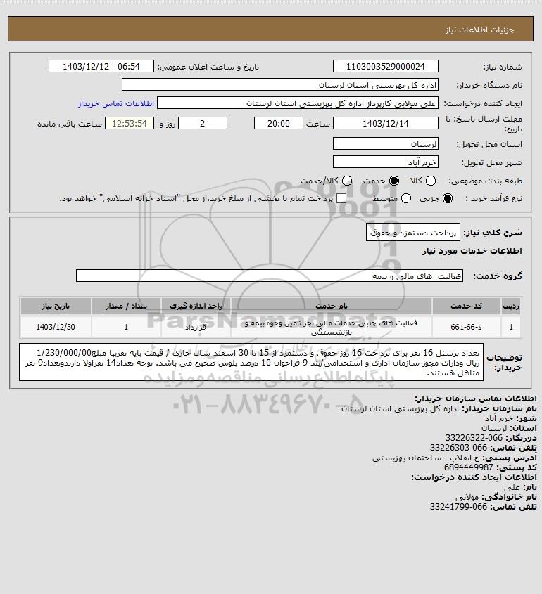 شرح کلی نیاز: پرداخت دستمزد و حقوق