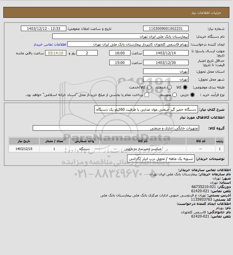 نام دستگاه خریدار:بیمارستان بانک ملی ایران تهران