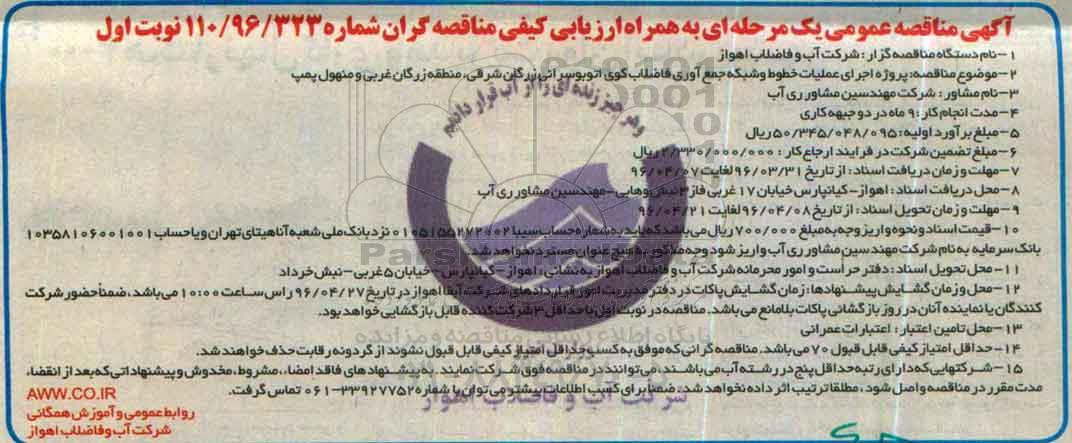 1- نام دستگاه مناقصه گزار: شرکت آب و فاضلاب اهواز