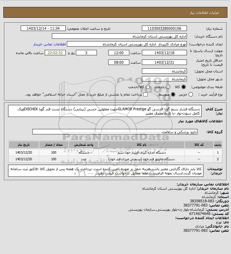نام دستگاه خریدار:اداره کل بهزیستی استان کرمانشاه