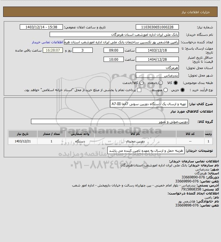 نام دستگاه خریدار:بانک ملی ایران اداره امورشعب استان هرمزگان