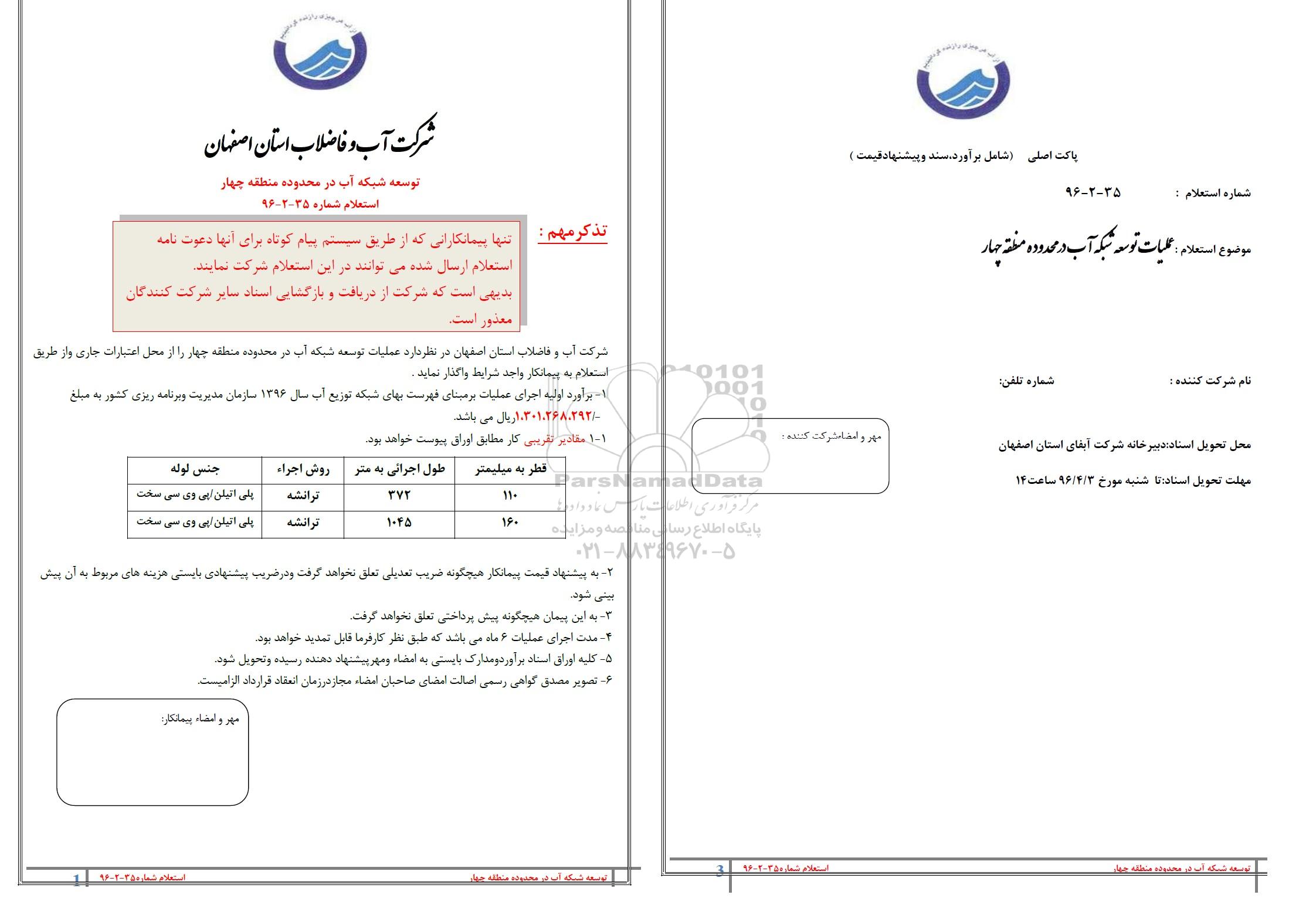 برای شرکت در مناقصه حتما از تصویر آگهی در سایت پارس نماد داده ها استفاده نمایید