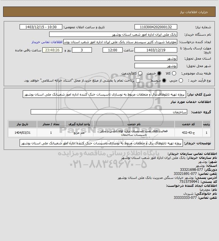 نام سازمان خریدار: بانک ملی ایران اداره امور شعب استان بوشهر