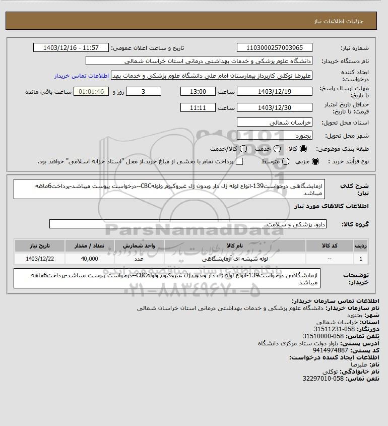 نام دستگاه خریدار:دانشگاه علوم پزشکی و خدمات بهداشتی درمانی استان خراسان شمالی