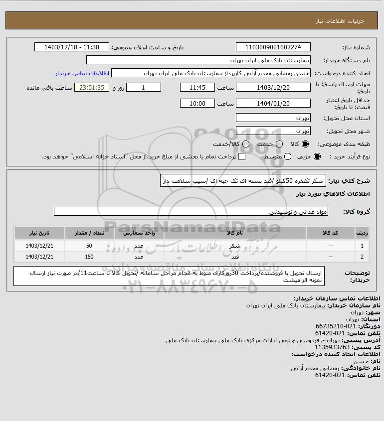 نام دستگاه خریدار:بیمارستان بانک ملی ایران تهران