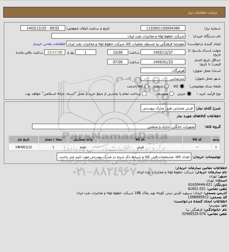 شرح کلی نیاز: فرش محرابی طبق مدرک پیوستی