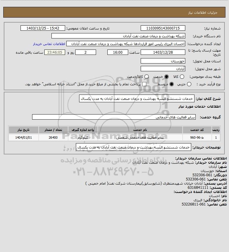 نام دستگاه خریدار:شبکه بهداشت و درمان صنعت نفت آبادان