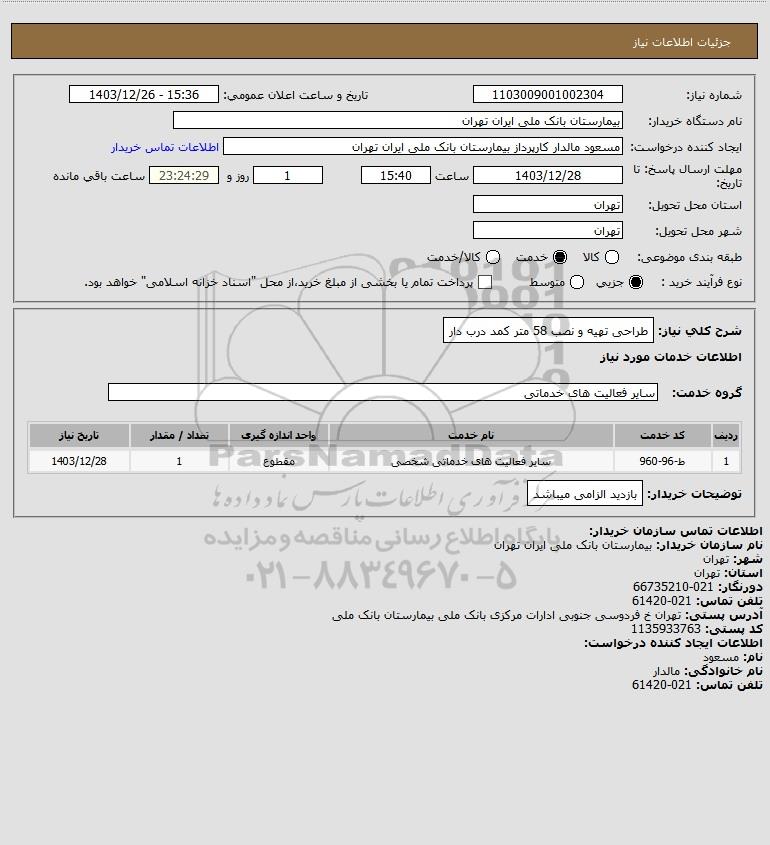 نام دستگاه خریدار:بیمارستان بانک ملی ایران تهران