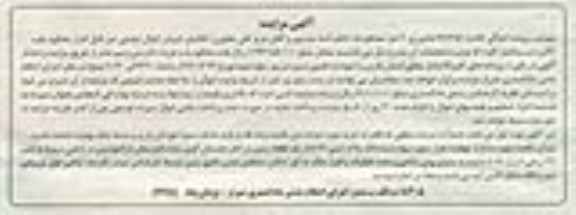 تمام آگهی ها طبق نمونه تصویر آگهی صرفا جهت اطلاع رسانی می باشد در خصوص استفاده از این آگهی هر گونه مسئولیت پرداخت به آگهی دهنده و بررسی و احراز هویت به عهده شرکت کنندگان می باشد و پایگاه خبری پارس نماد هیچگونه منفعت و مسئولیتی بابت تعهد این آگهی ندارد.