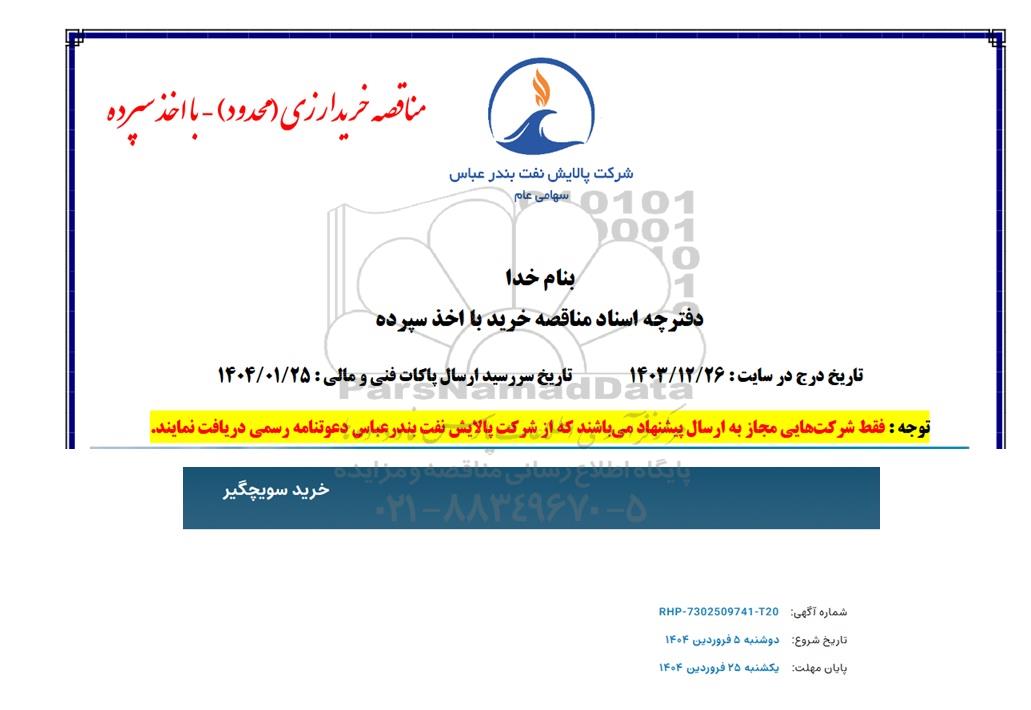 مناقصه خرید سویچگیر, مناقصه خرید سویچگیر