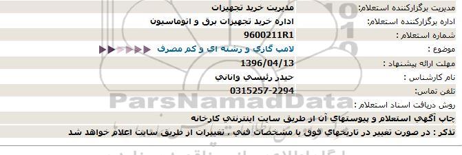 اداره برگزارکننده استعلام: اداره خرید تجهیزات هیدرولیک