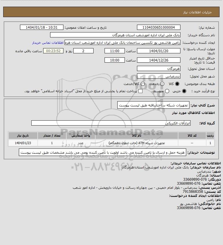 1 -- تجهیزات شبکه ATM (حالت انتقال ناهمگام) عدد 1 1404/01/23