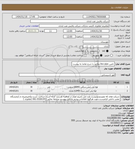 | 2 | -- | لوله پلی اتیلن سبک (LDPE) تجاری | متر | 30 | 1404/02/01 |