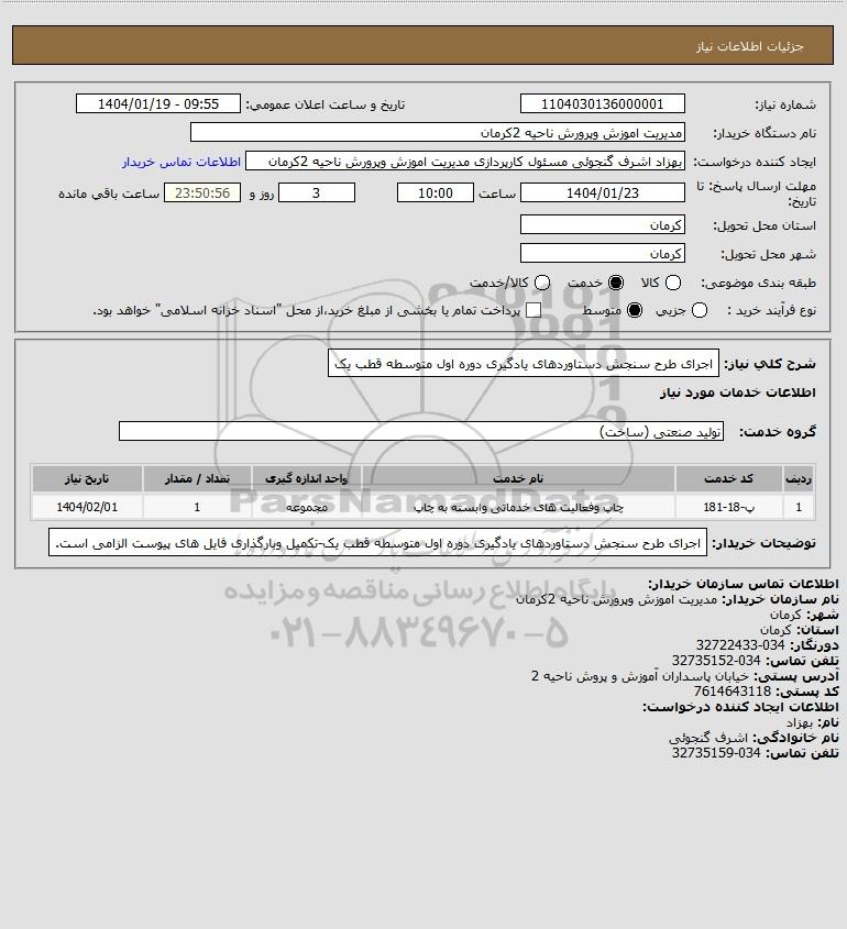 نام دستگاه خریدار:مدیریت اموزش وپرورش ناحیه 2کرمان