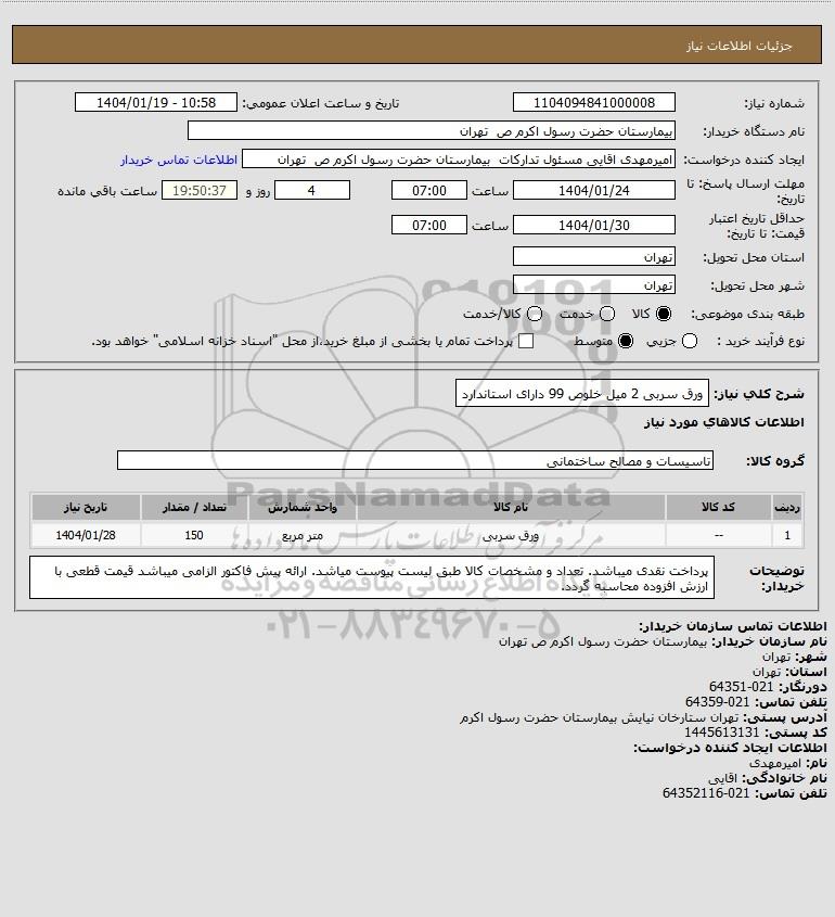 | 1 | -- | ورق سربی | متر مربع | 150 | 1404/01/28 |