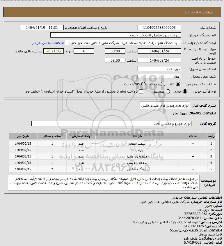 استعلام لوازم هیدروموتور لودر هیدرواطلس, استعلام لوازم هیدروموتور لودر هیدرواطلس