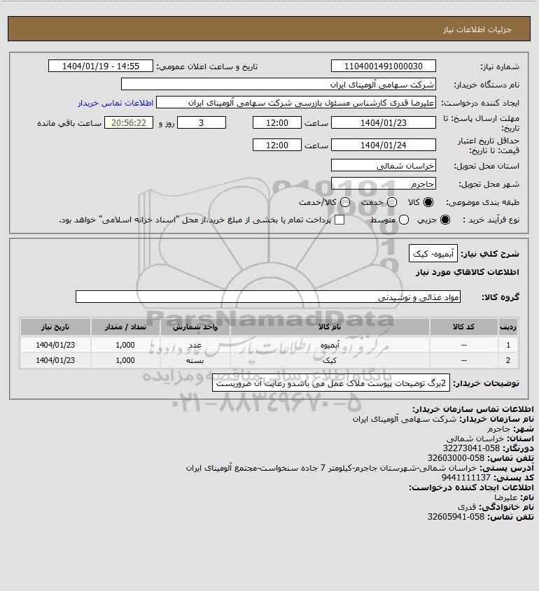 | 1 | -- | آبمیوه | عدد | 1,000 | 1404/01/23 |
