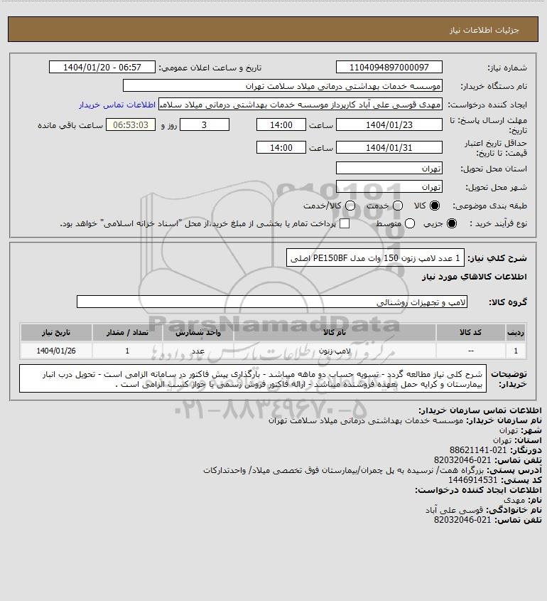 نام دستگاه خریدار:موسسه خدمات بهداشتی درمانی میلاد سلامت تهران