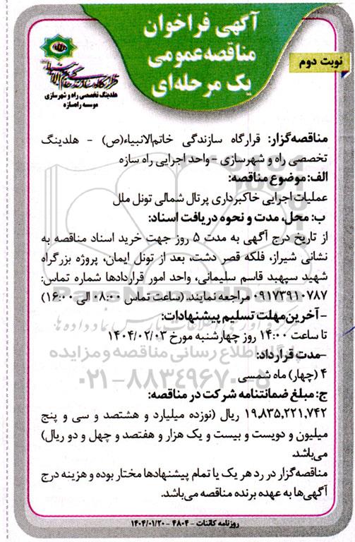 مناقصه گزار قرارگاه سازندگی خاتم الانبیاء (ص) - هلدینگ تخصصی راه و شهرسازی - واحد اجرایی راه سازه - پروژه بزرگراه شهید سپهبد قاسم سلیمانی شیراز
