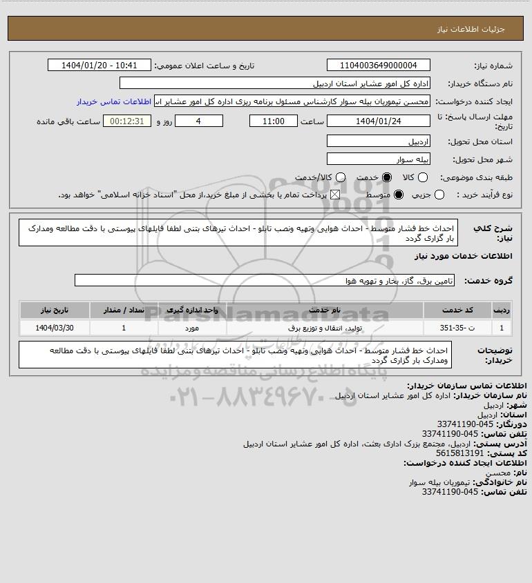 شرح کلی نیاز: احداث خط فشار متوسط - احداث هوایی وتهیه ونصب تابلو - احداث تیرهای بتنی