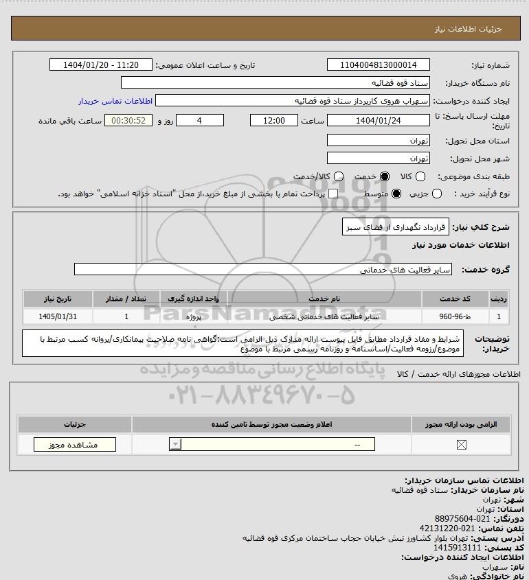 شرح کلی نیاز: قرارداد نگهداری از فضای سبز