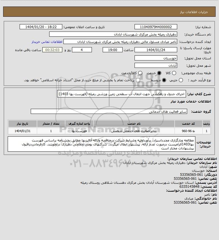 نام دستگاه خریدار:دهیاری رمیله بخش مرکزی شهرستان ابادان