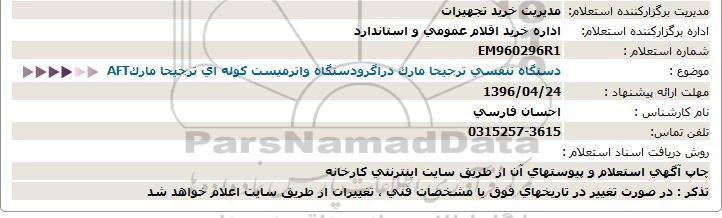 اداره برگزارکننده استعلام: اداره خرید اقلام عمومی و استاندارد