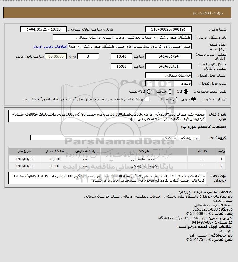 نام سازمان خریدار: دانشگاه علوم پزشکی و خدمات بهداشتی درمانی استان خراسان شمالی