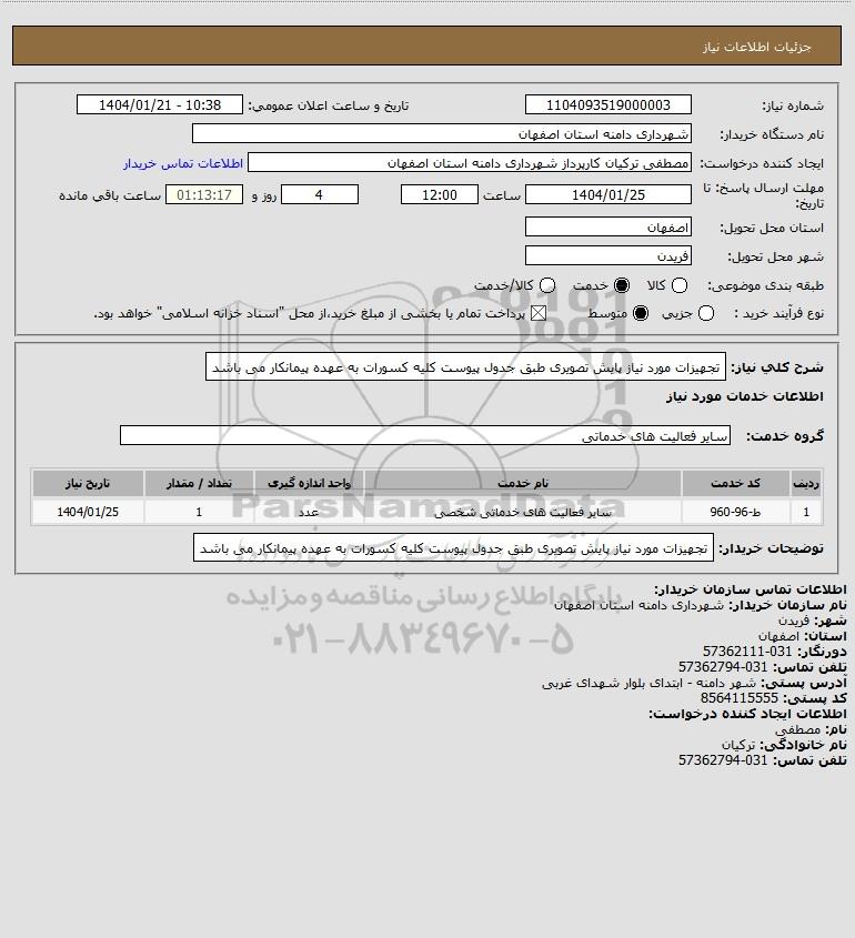 نام دستگاه خریدار:شهرداری دامنه استان اصفهان