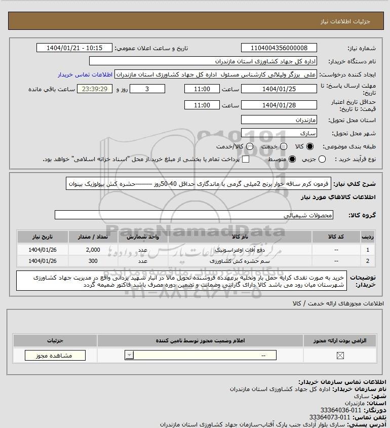 نام دستگاه خریدار:اداره کل جهاد کشاورزی استان مازندران