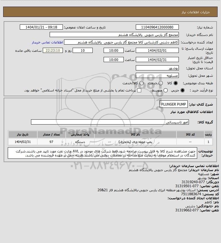 شرح کلی نیاز: PLUNGER PUMP