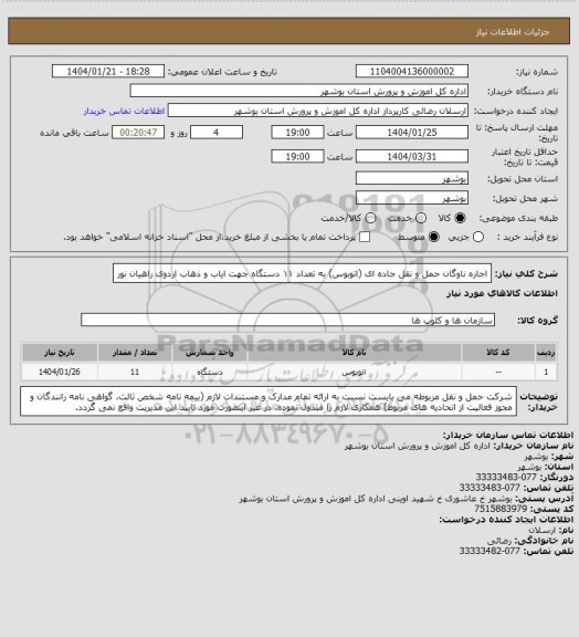 1 -- اتوبوس دستگاه 11 1404/01/26