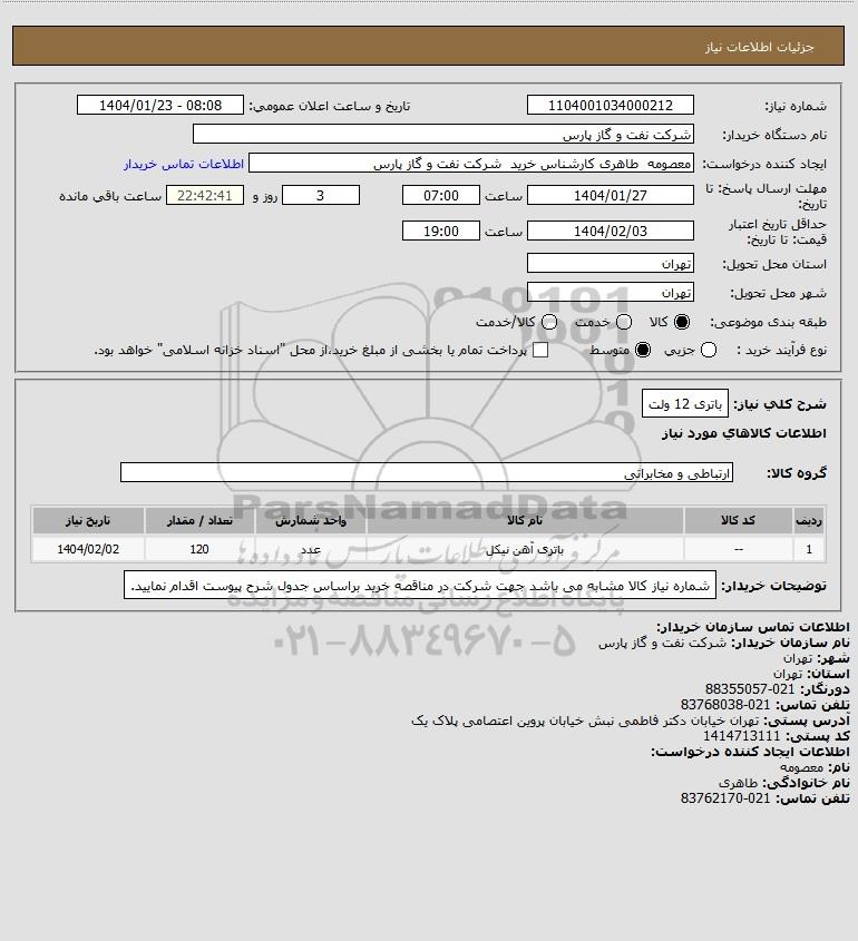 | 1 | -- | باتری آهن نیکل | عدد | 120 | 1404/02/02 |