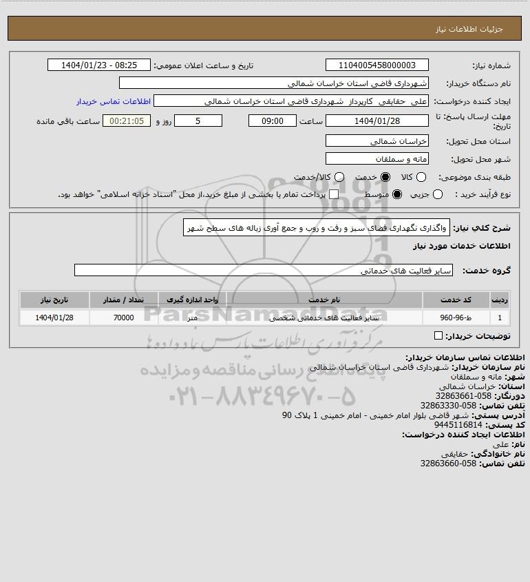 نام سازمان خریدار: شهرداری قاضی استان خراسان شمالی