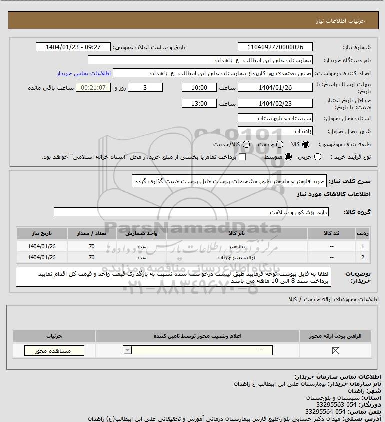 نام دستگاه خریدار:بیمارستان علی ابن ابیطالب ع زاهدان