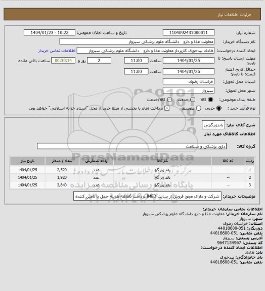 نام دستگاه خریدار:معاونت غذا و دارو دانشگاه علوم پزشکی سبزوار