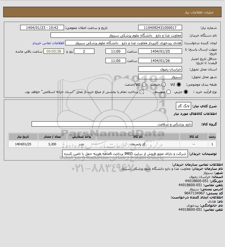 نام دستگاه خریدار:معاونت غذا و دارو دانشگاه علوم پزشکی سبزوار
